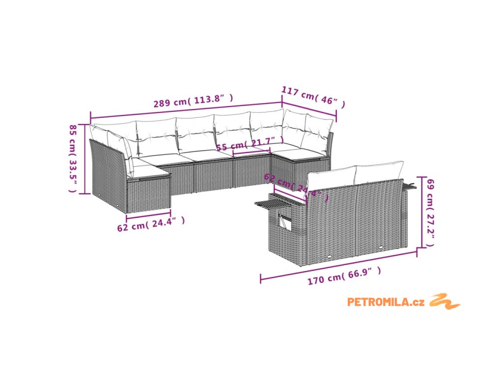 9dílná zahradní sedací souprava s poduškami černá polyratan