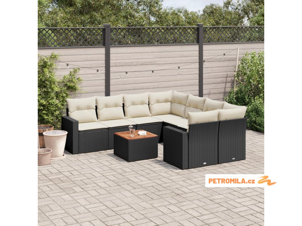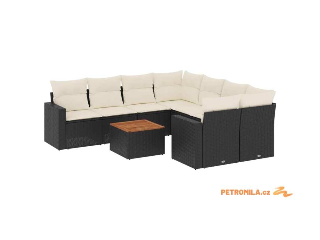 9dílná zahradní sedací souprava s poduškami černá polyratan