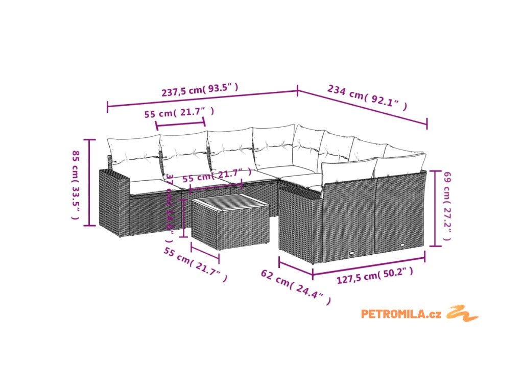 Tato zahradní sedací souprava je dokonalým doplňkem vaší zahrady, terasy nebo dvorku a poskytne vám pohodlné a příjemné místo, kde si můžete povídat s rodinou a přáteli nebo jen tak odpočívat a užívat si pobyt venku.