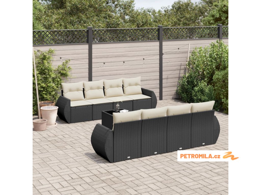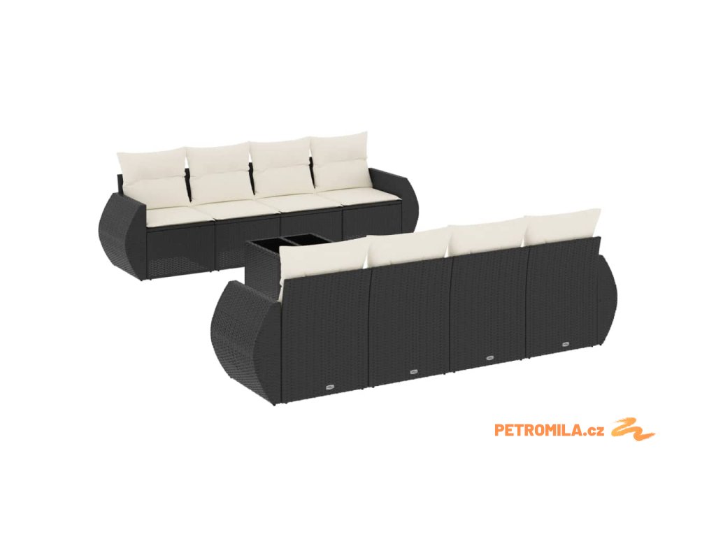 9dílná zahradní sedací souprava s poduškami černá polyratan