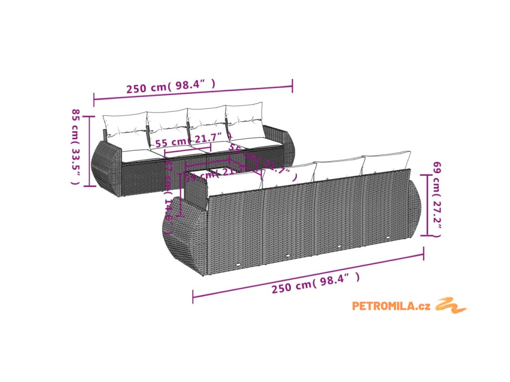 Tato zahradní sedací souprava je dokonalým doplňkem vaší zahrady, terasy nebo dvorku a poskytne vám pohodlné a příjemné místo, kde si můžete povídat s rodinou a přáteli nebo jen tak odpočívat a užívat si pobyt venku.