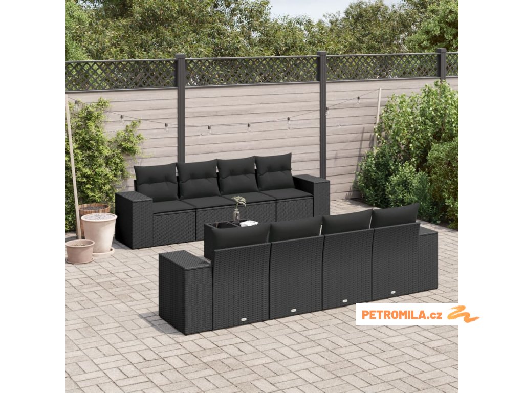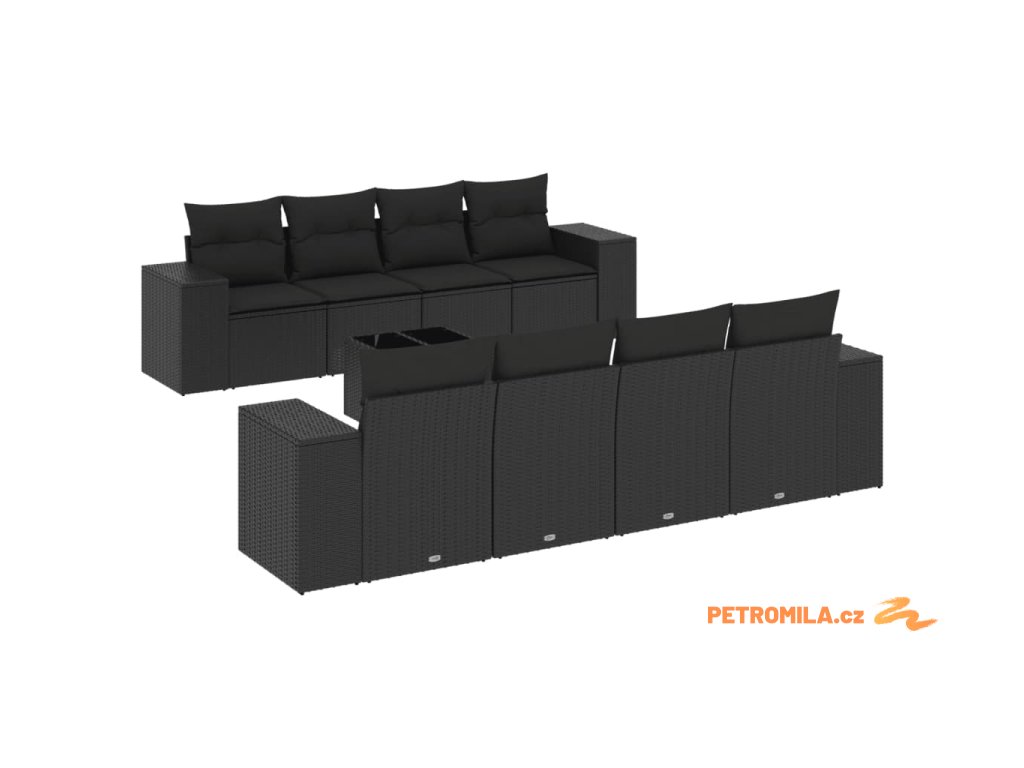 9dílná zahradní sedací souprava s poduškami černá polyratan