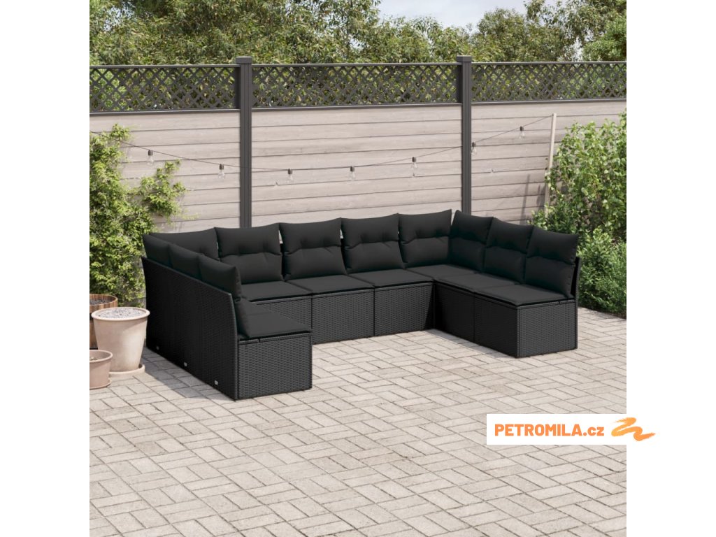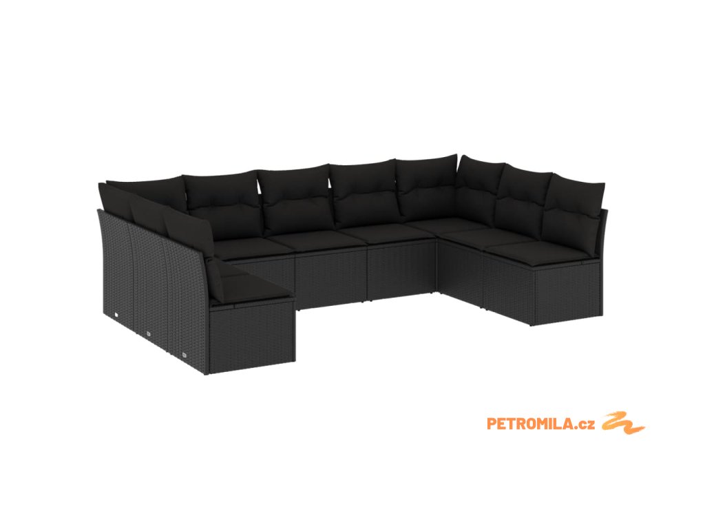 9dílná zahradní sedací souprava s poduškami černá polyratan