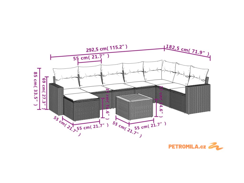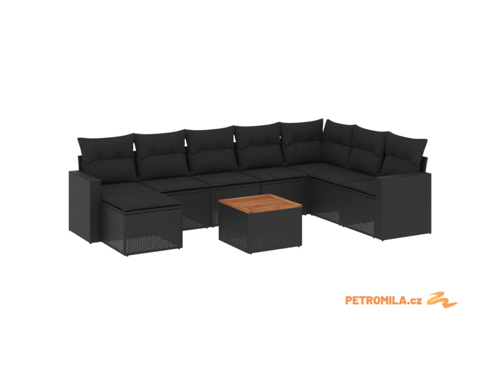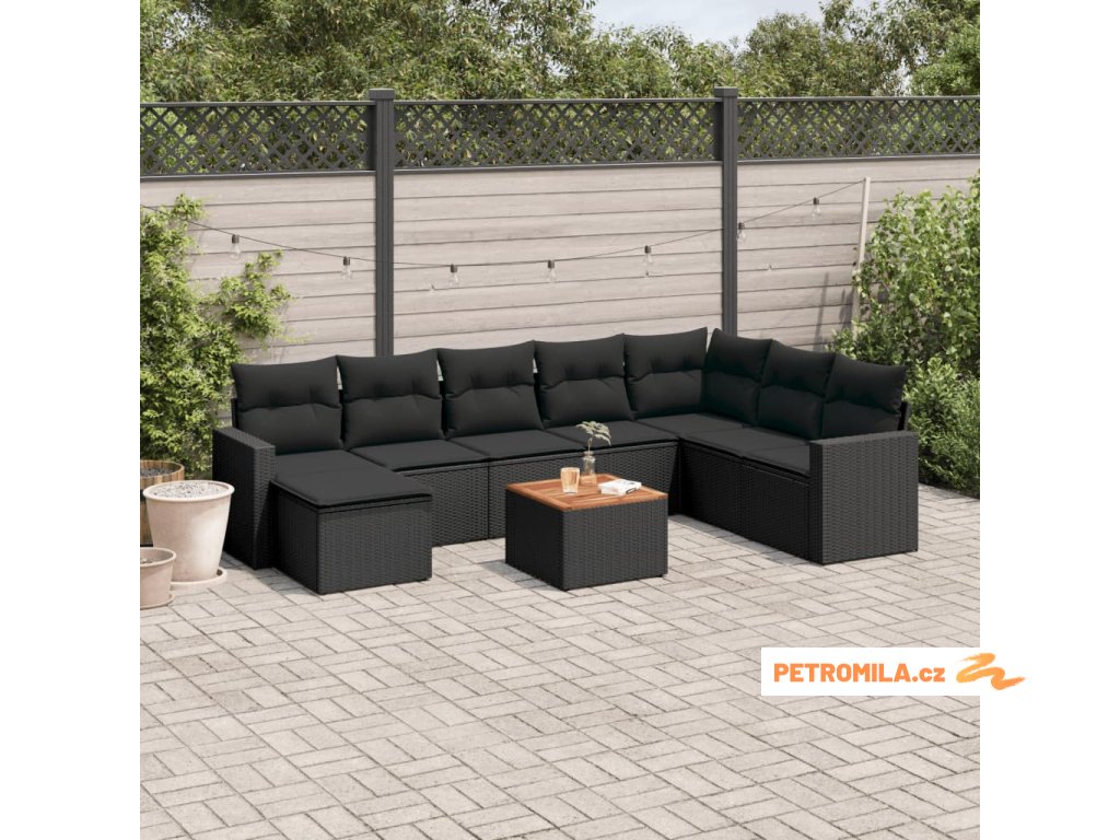 9dílná zahradní sedací souprava s poduškami černá polyratan