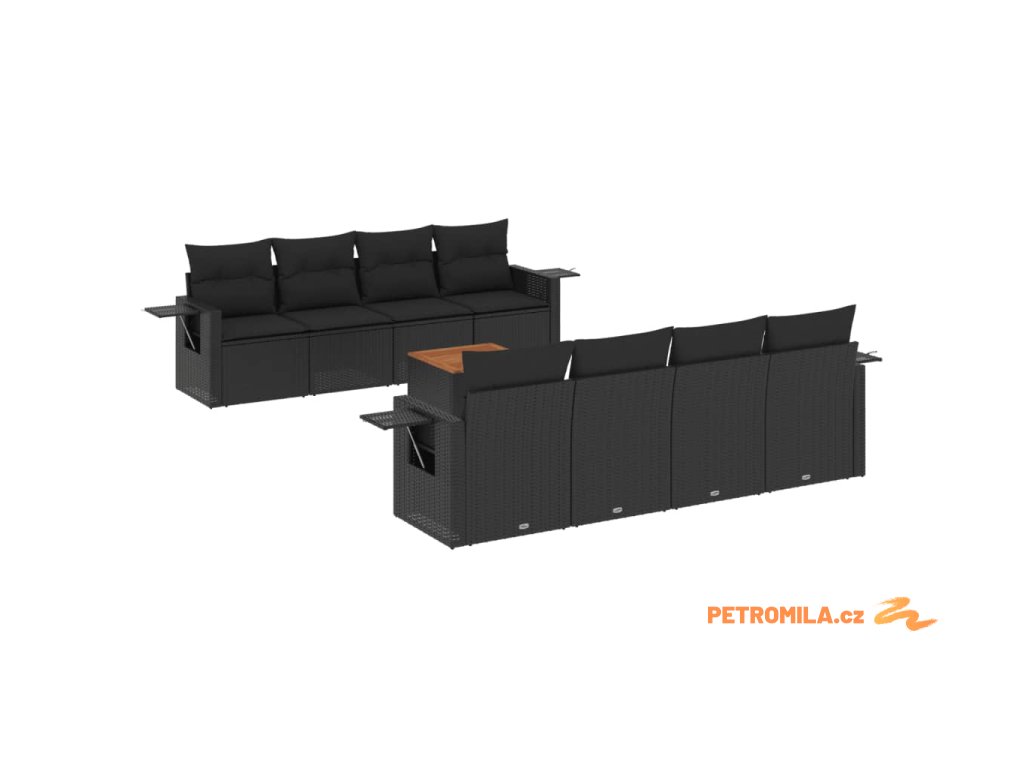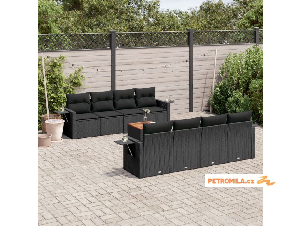 9dílná zahradní sedací souprava s poduškami černá polyratan