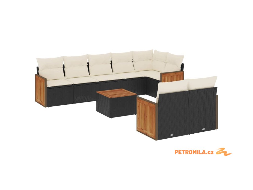 9dílná zahradní sedací souprava s poduškami černá polyratan
