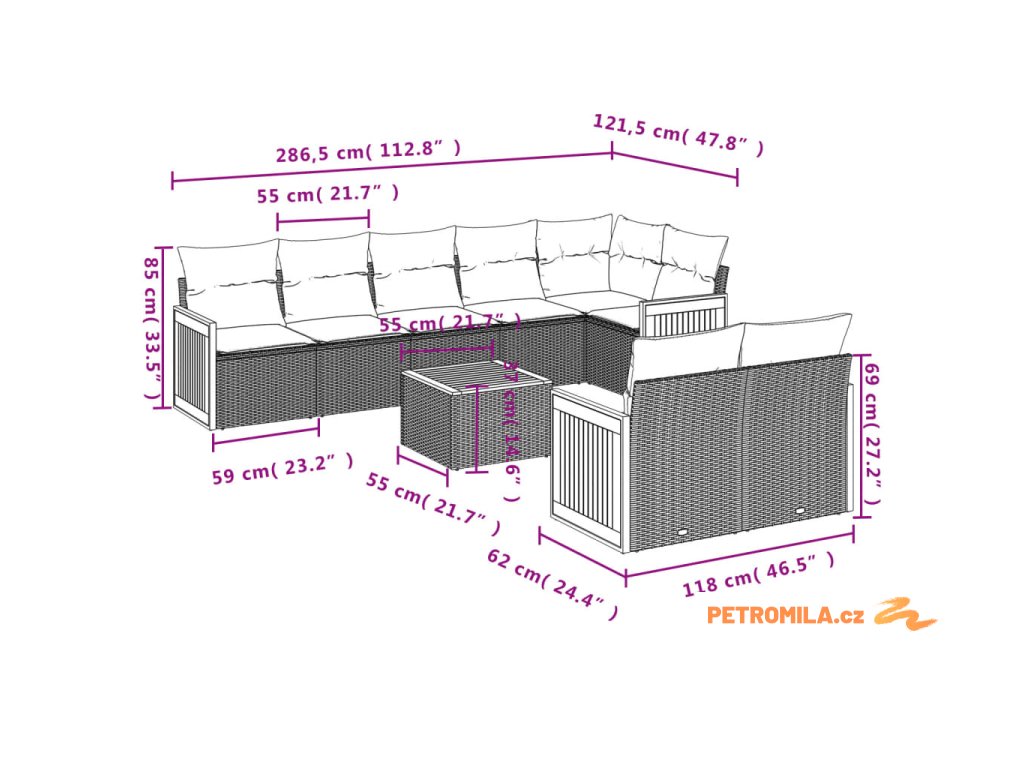 Sada zahradních pohovek s polštářem 9 pcs Béžová Poly ratan
