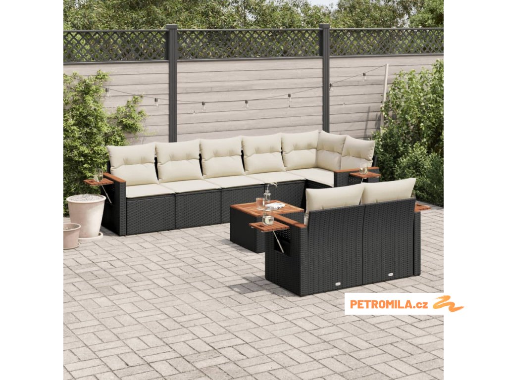 9dílná zahradní sedací souprava s poduškami černá polyratan