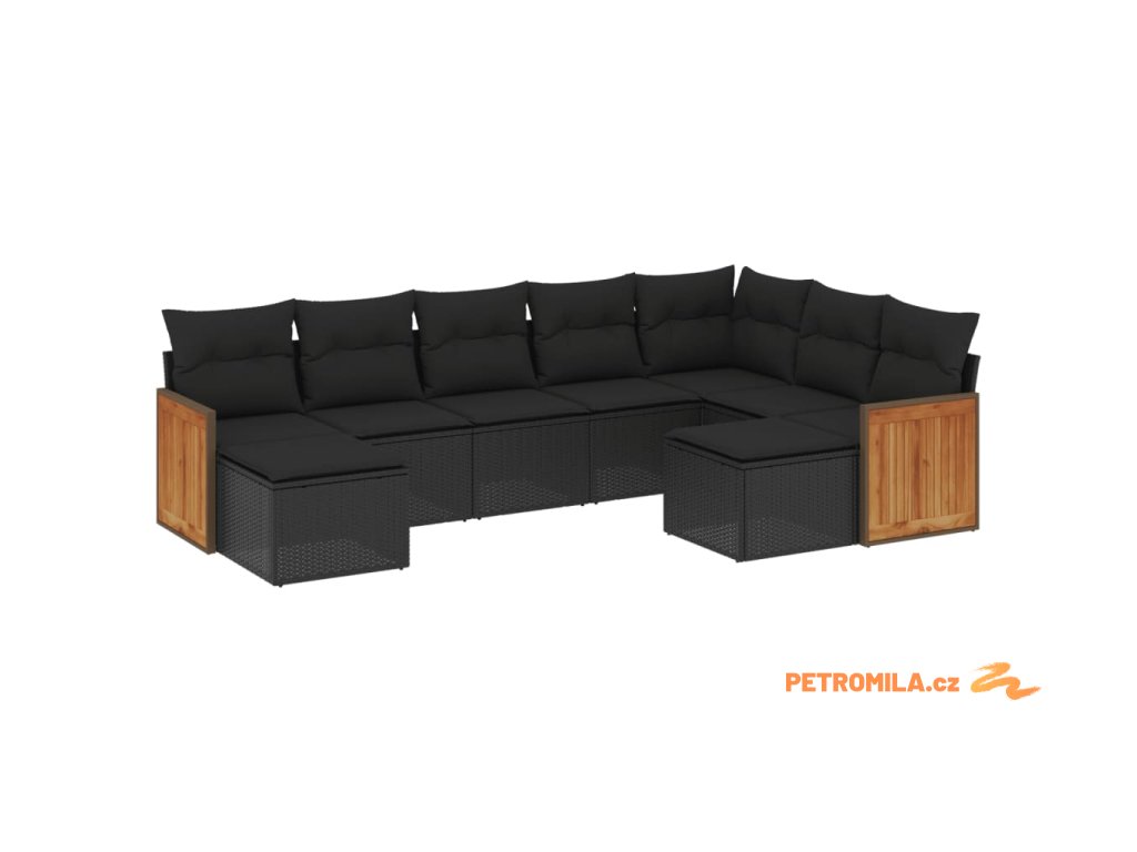9dílná zahradní sedací souprava s poduškami černá polyratan