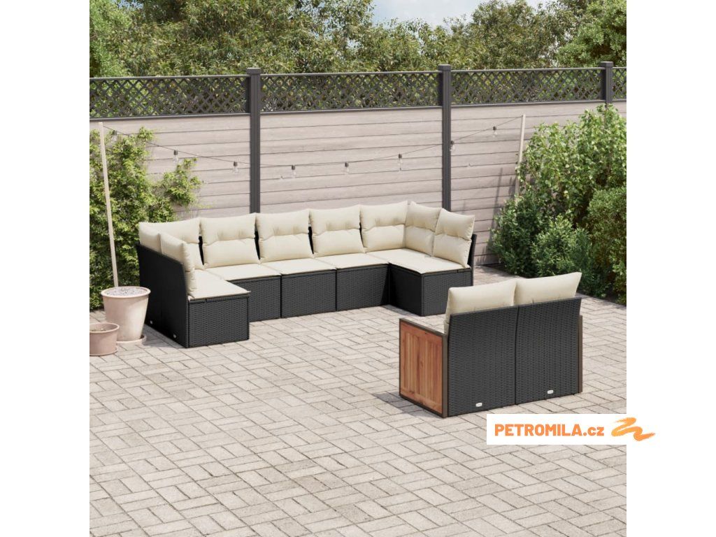 9dílná zahradní sedací souprava s poduškami černá polyratan