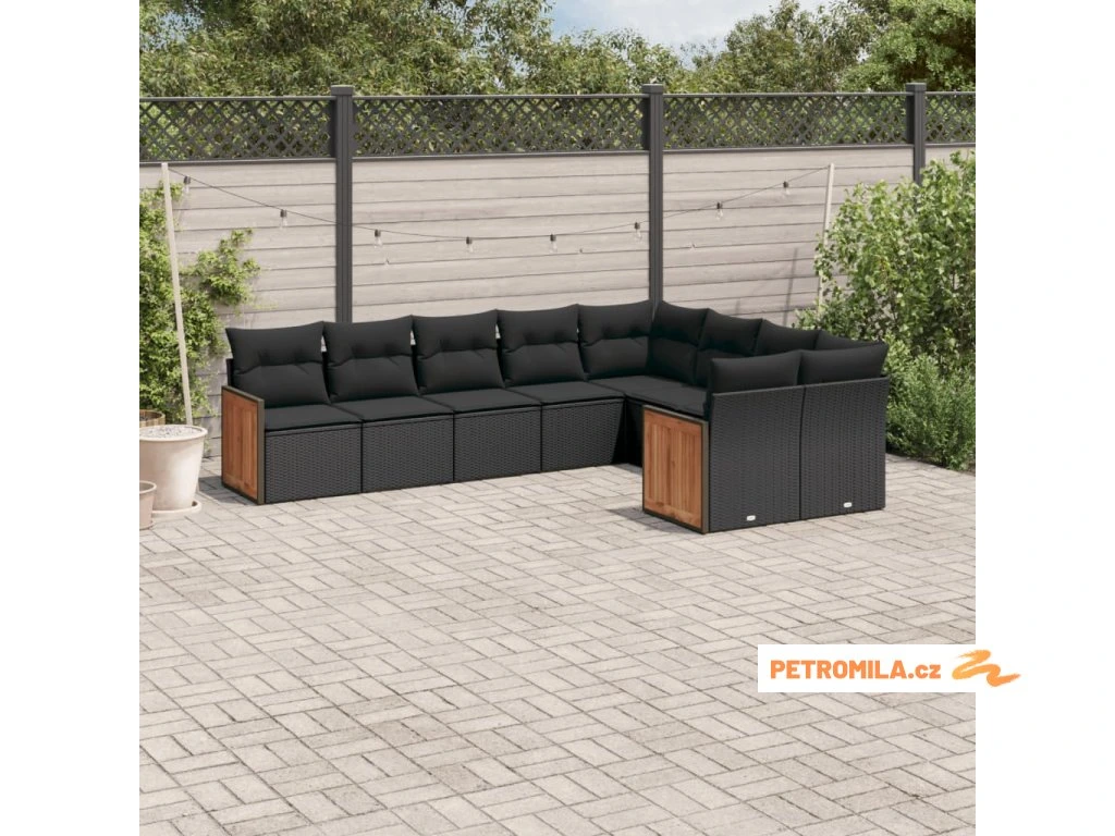 9dílná zahradní sedací souprava s poduškami černá polyratan