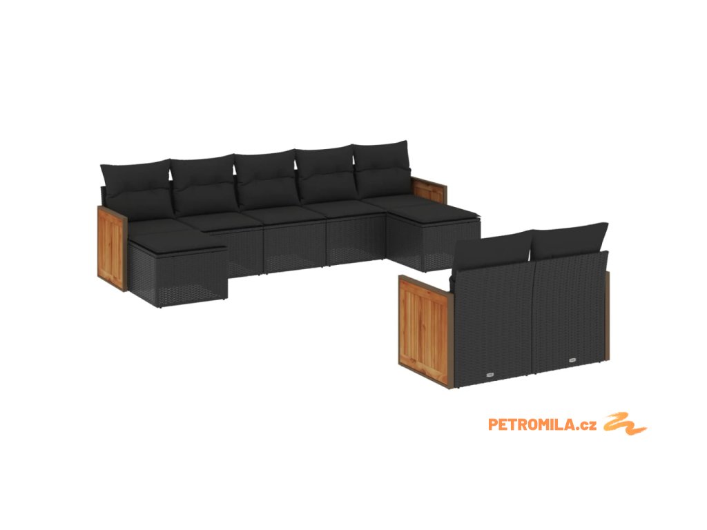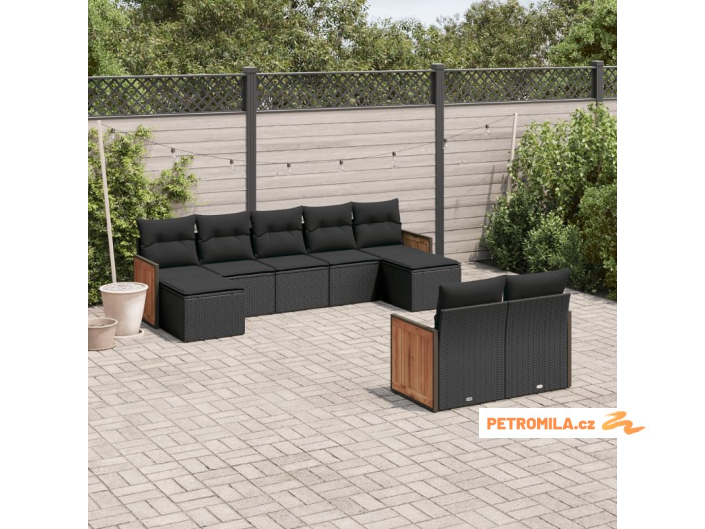 9dílná zahradní sedací souprava s poduškami černá polyratan