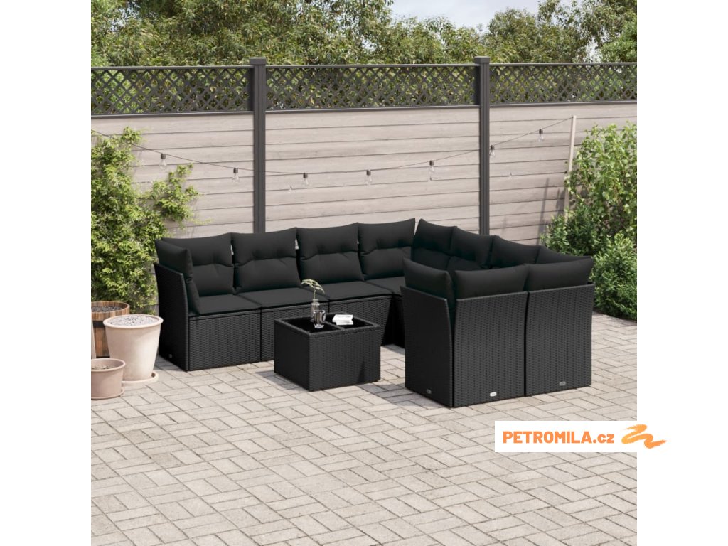 9dílná zahradní sedací souprava s poduškami černá polyratan