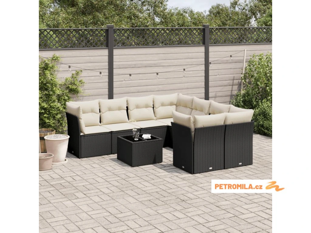 9dílná zahradní sedací souprava s poduškami černá polyratan