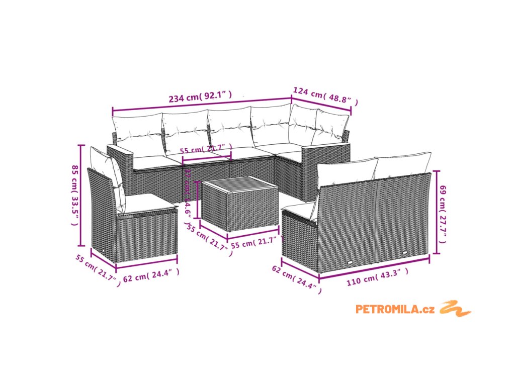 Sada zahradních pohovek s polštářem 9 pcs Béžová Poly ratan