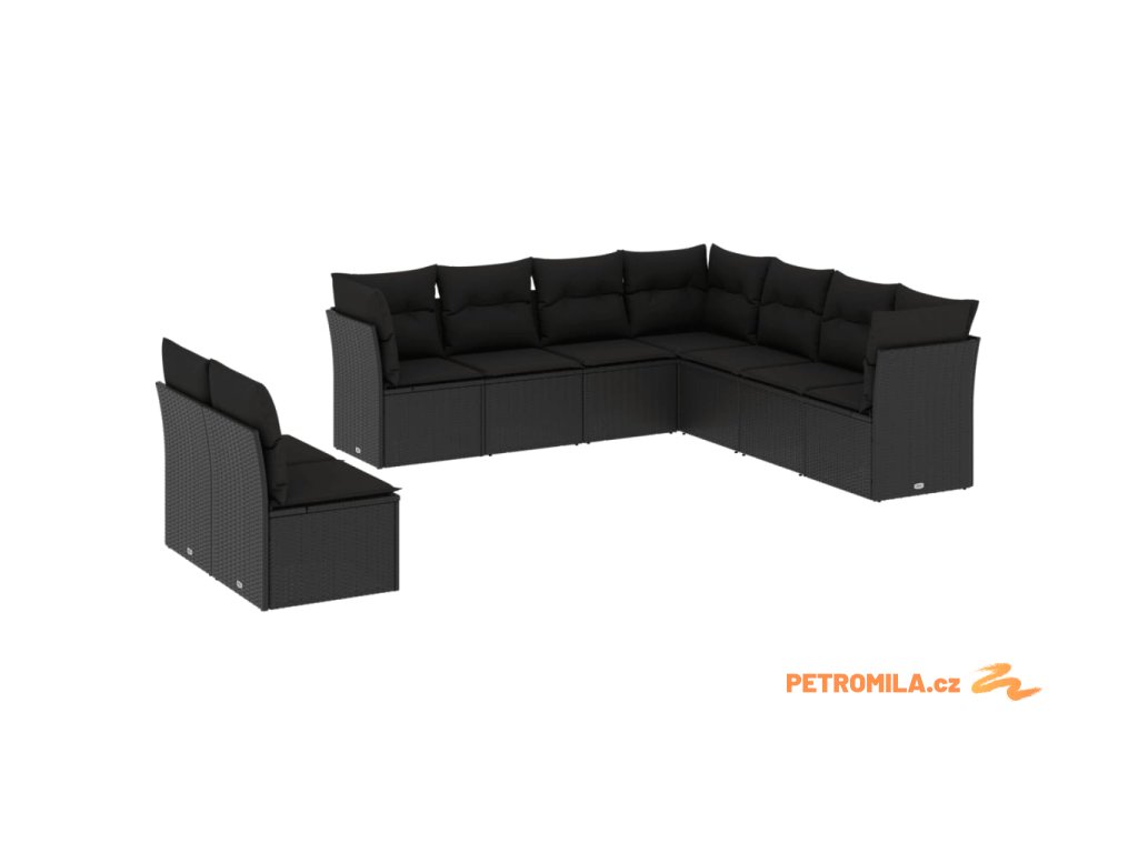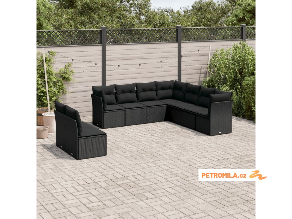 9dílná zahradní sedací souprava s poduškami černá polyratan
