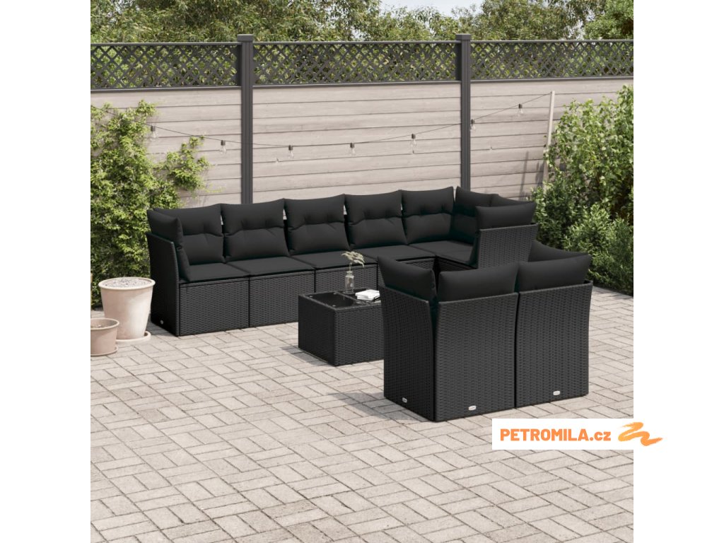 9dílná zahradní sedací souprava s poduškami černá polyratan