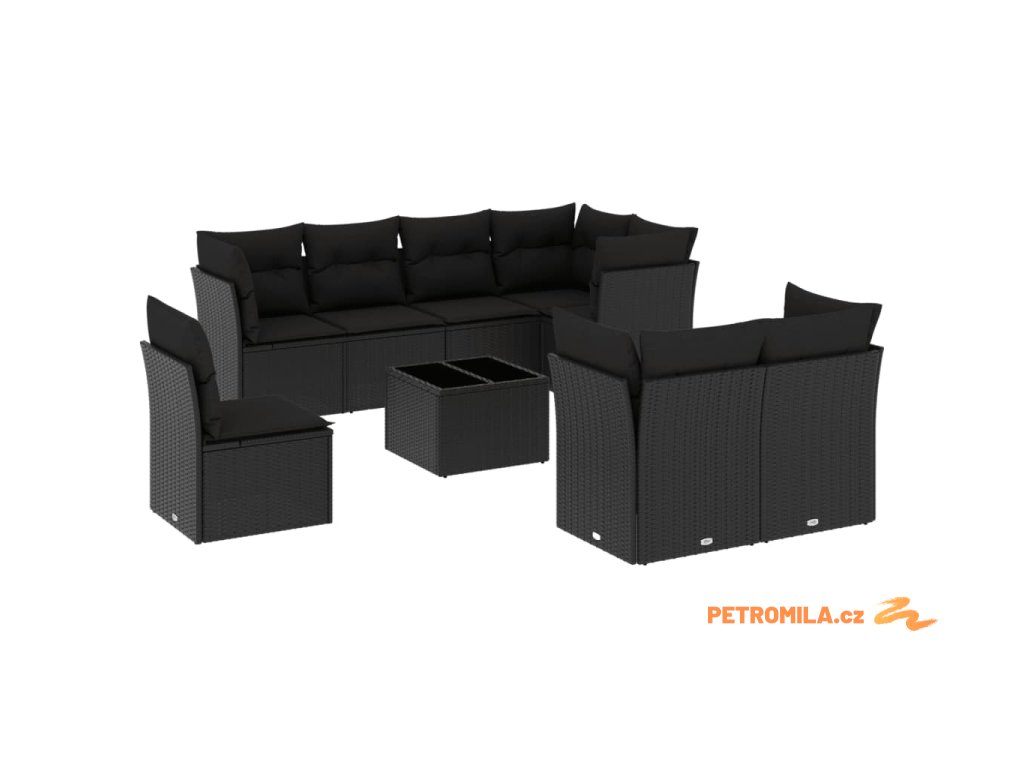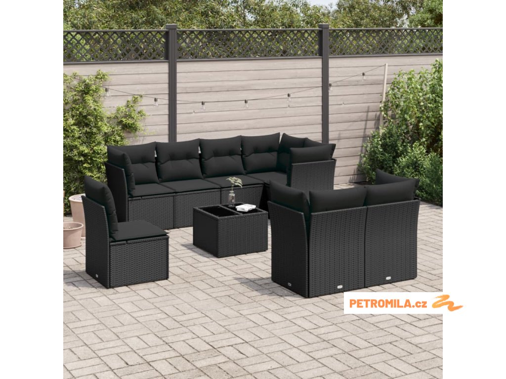 9dílná zahradní sedací souprava s poduškami černá polyratan