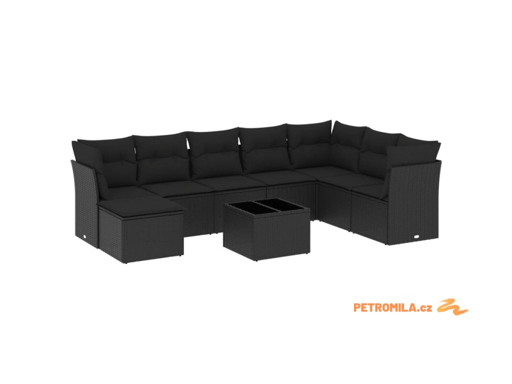 9dílná zahradní sedací souprava s poduškami černá polyratan