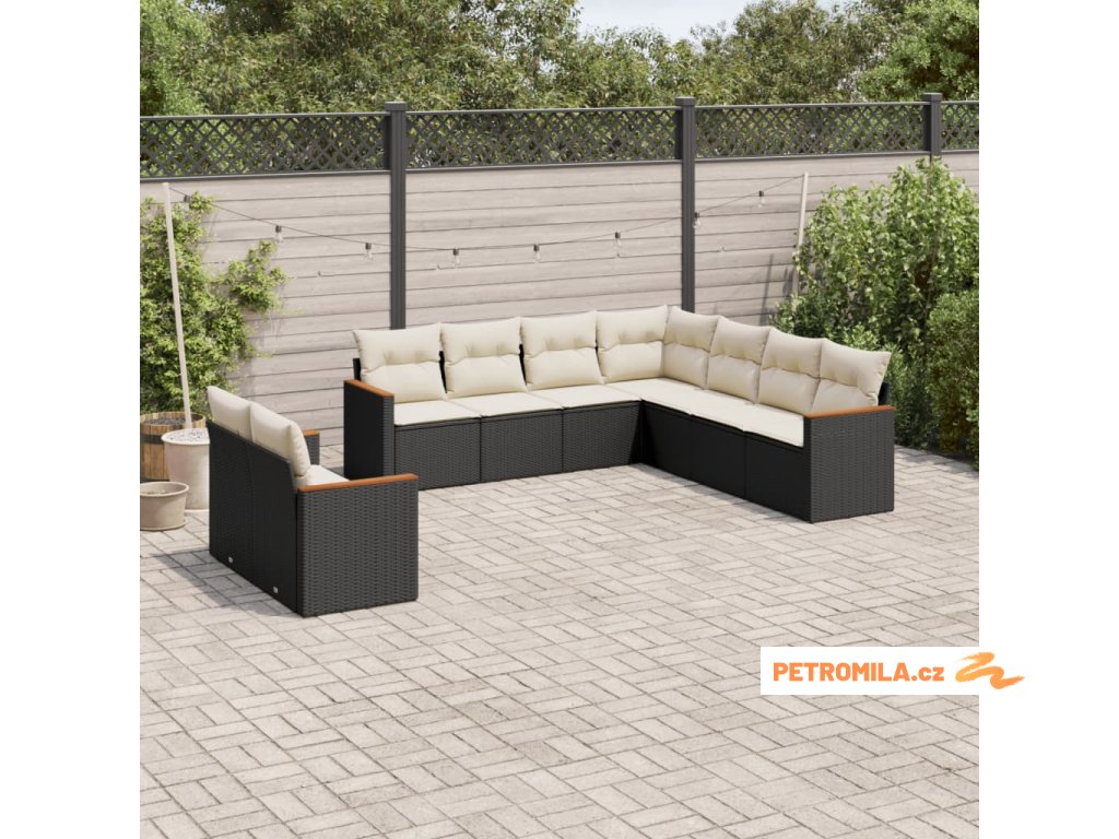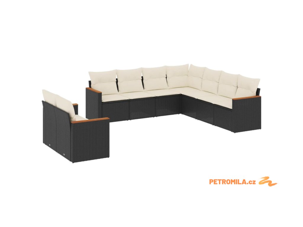 9dílná zahradní sedací souprava s poduškami černá polyratan