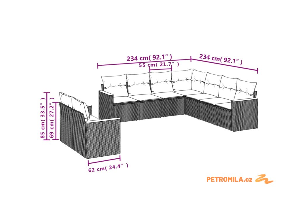 Sada zahradních pohovek s polštářem s úložištěm 8 pcs polyratan