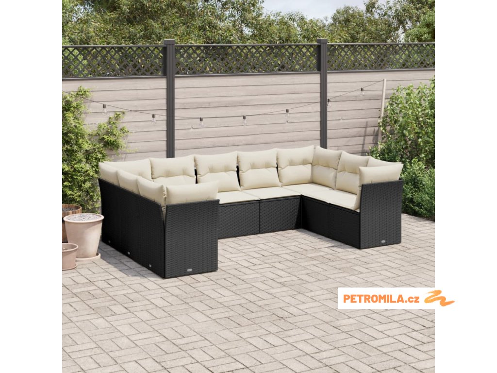 9dílná zahradní sedací souprava s poduškami černá polyratan