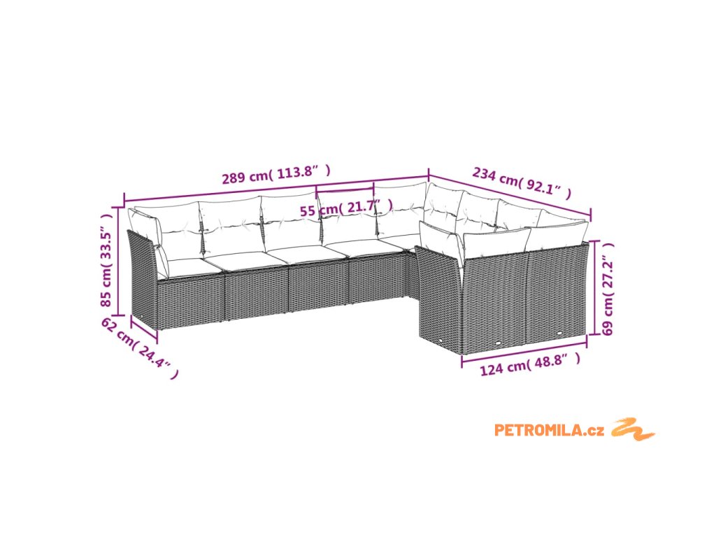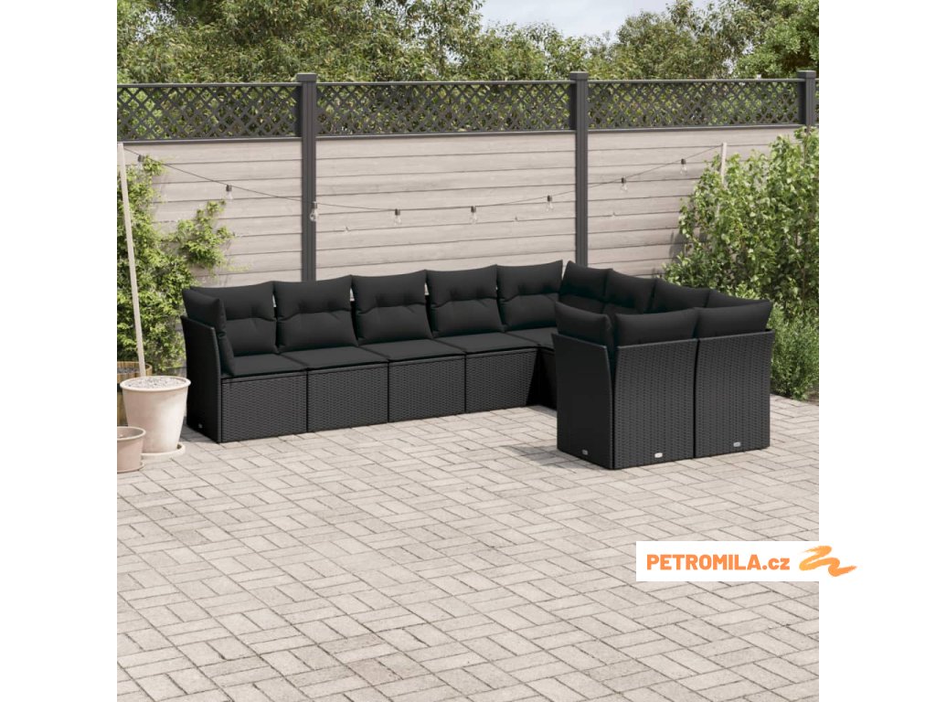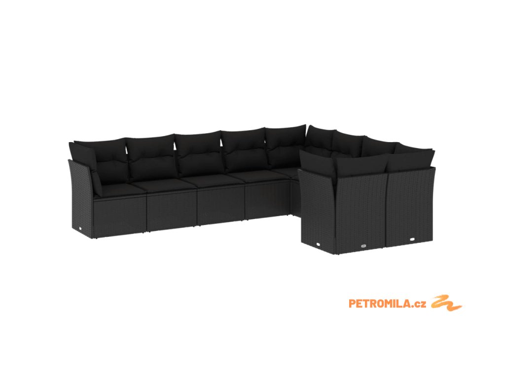 9dílná zahradní sedací souprava s poduškami černá polyratan