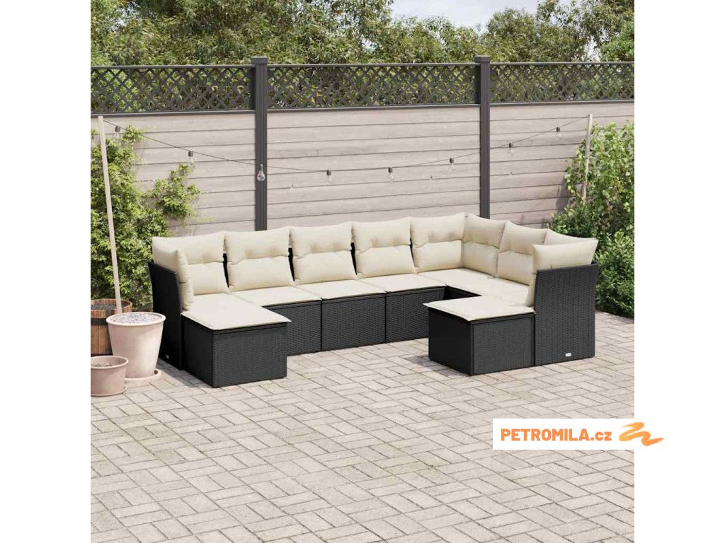 9dílná zahradní sedací souprava s poduškami černá polyratan
