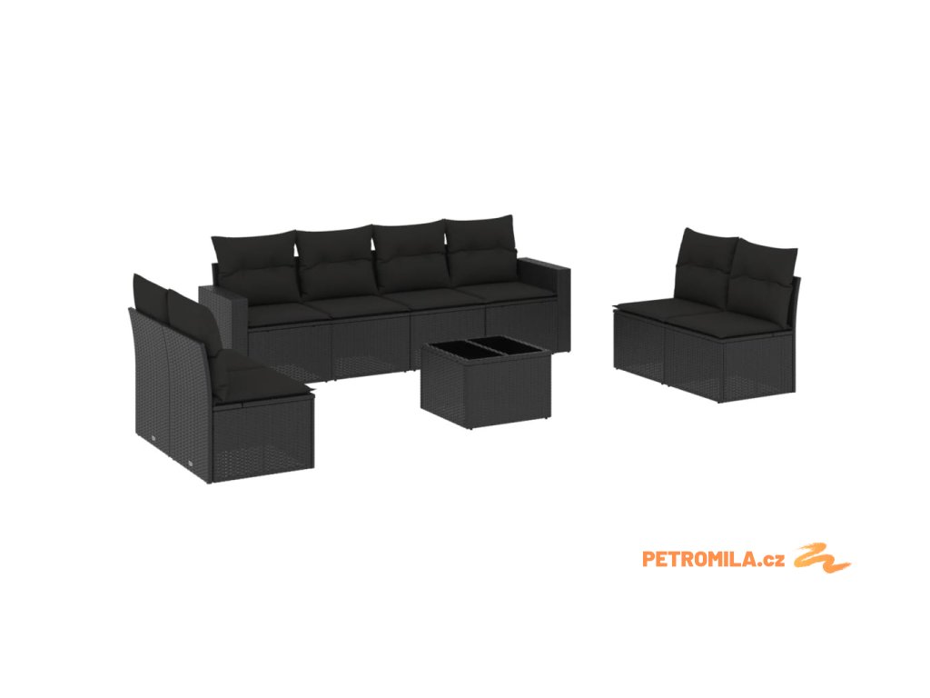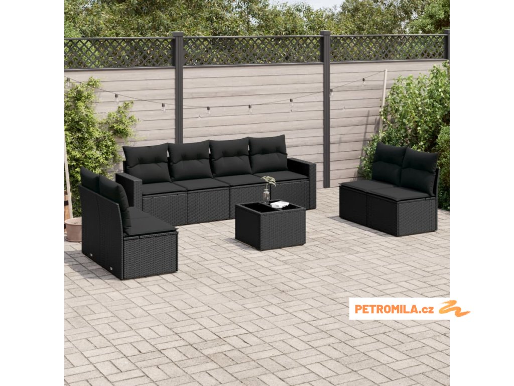 9dílná zahradní sedací souprava s poduškami černá polyratan