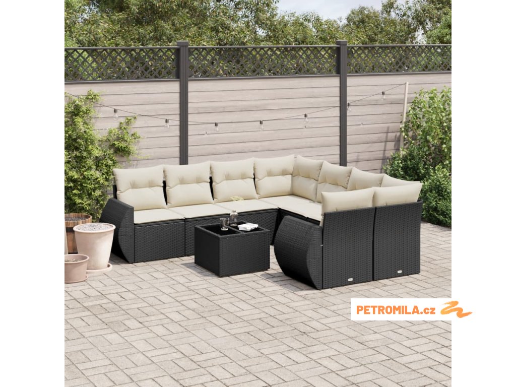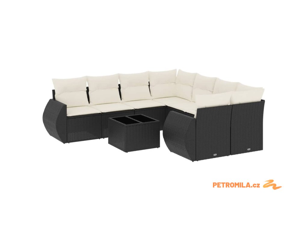9dílná zahradní sedací souprava s poduškami černá polyratan