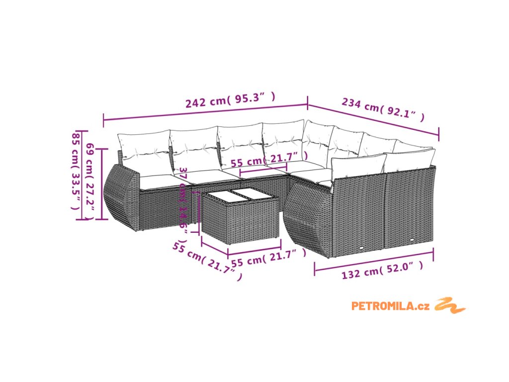 Sada zahradních pohovek s polštářem 9 pcs Béžová Poly ratan