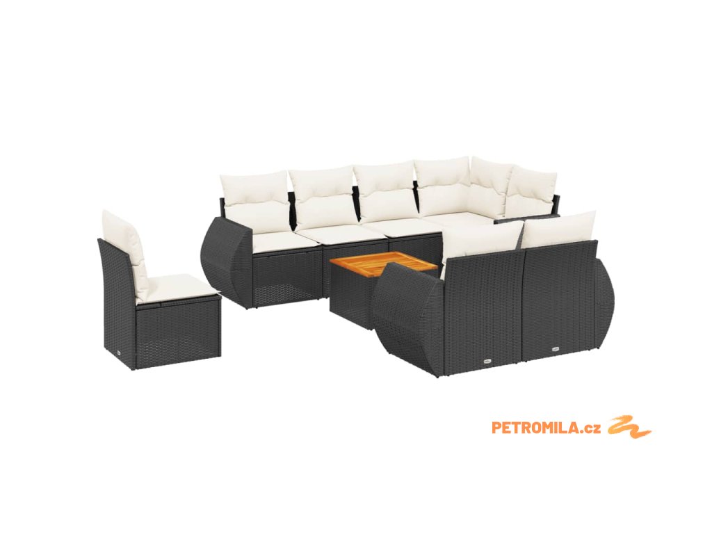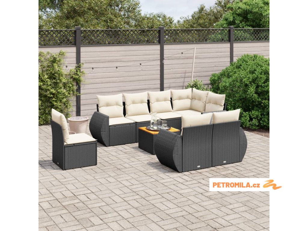 9dílná zahradní sedací souprava s poduškami černá polyratan