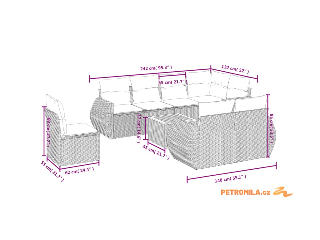Sada zahradních pohovek s polštářem 9 pcs Béžová Poly ratan