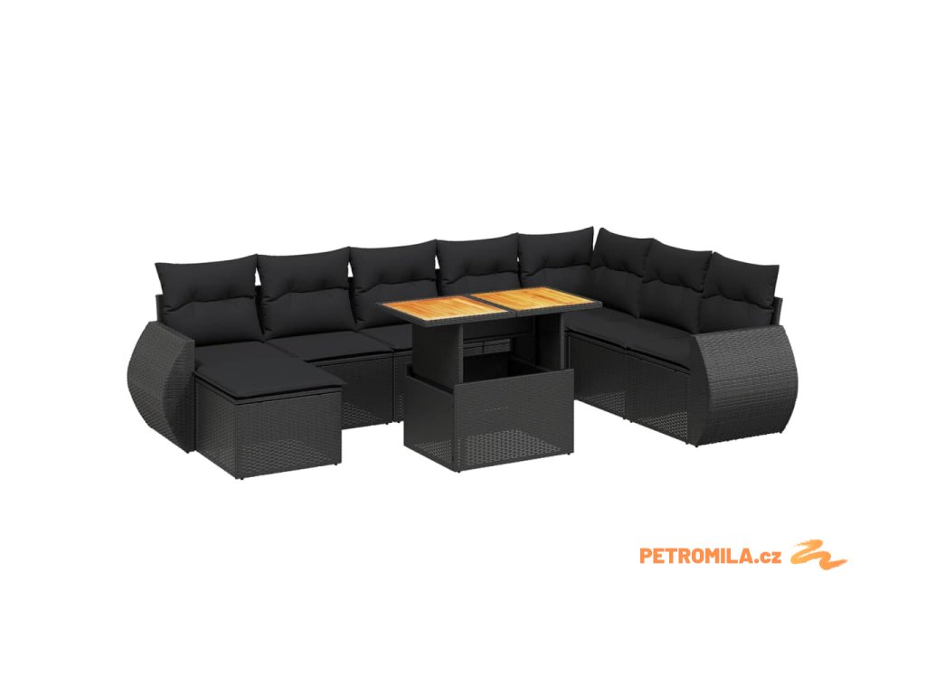 9dílná zahradní sedací souprava s poduškami černá polyratan