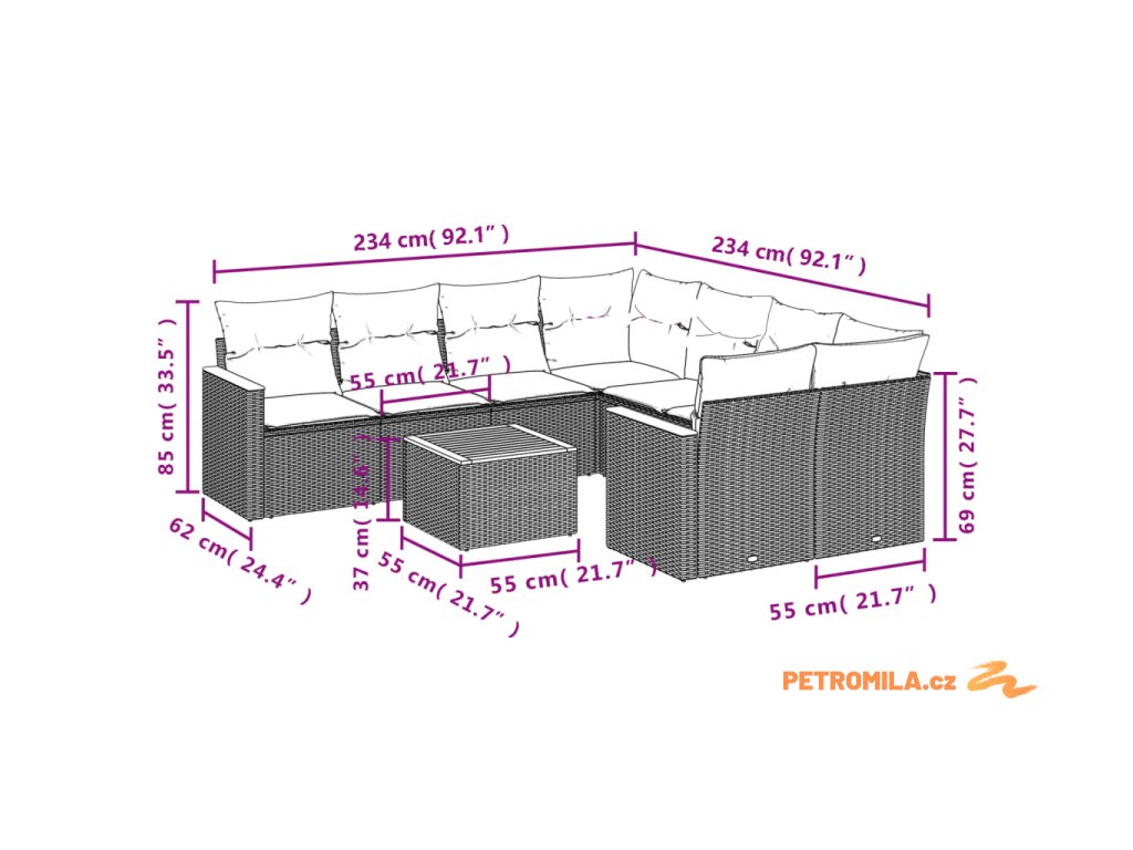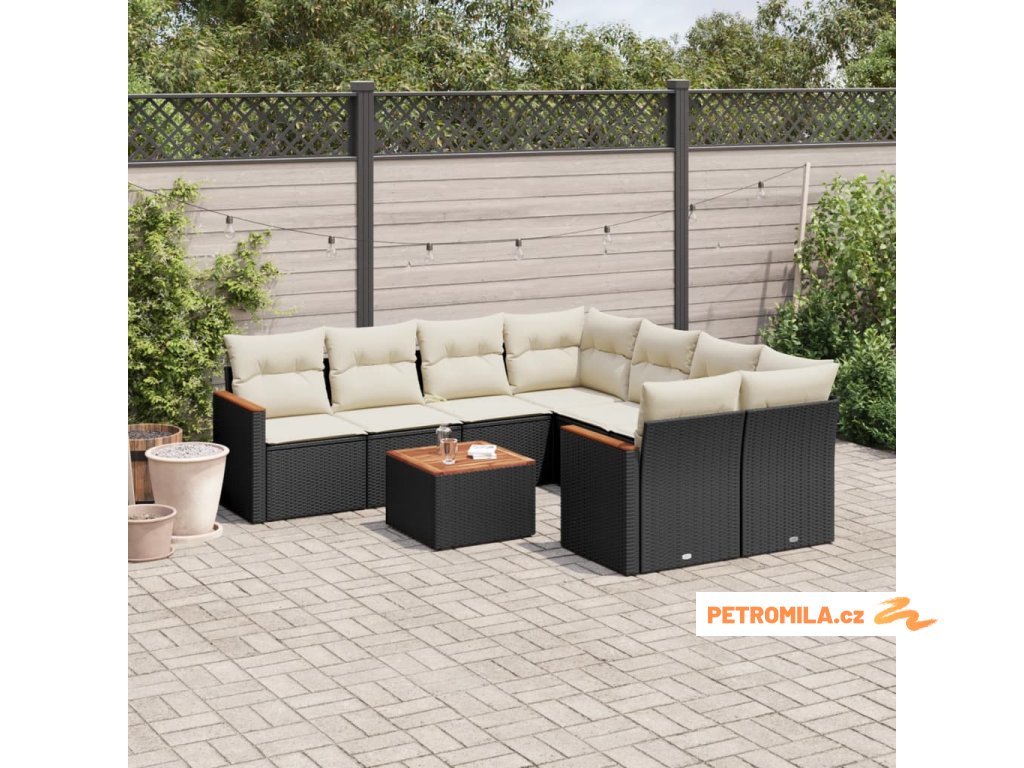 9dílná zahradní sedací souprava s poduškami černá polyratan