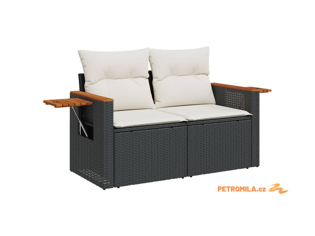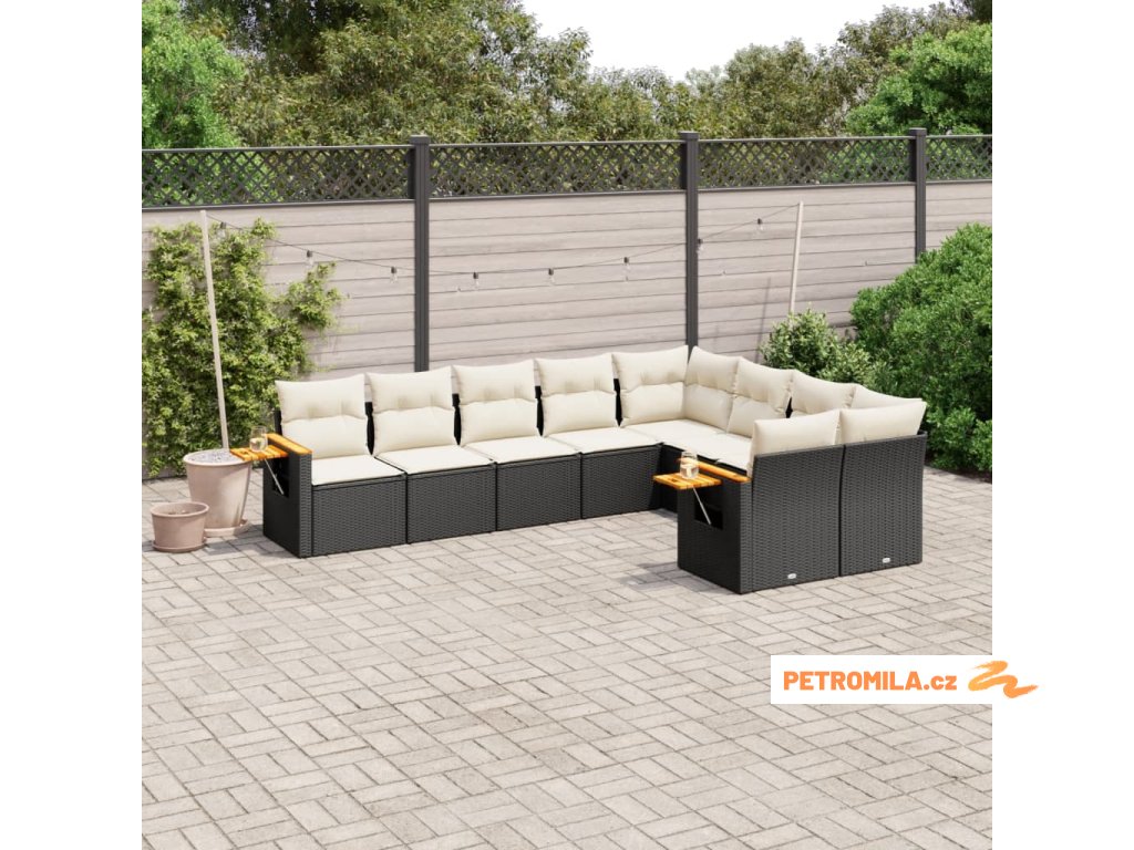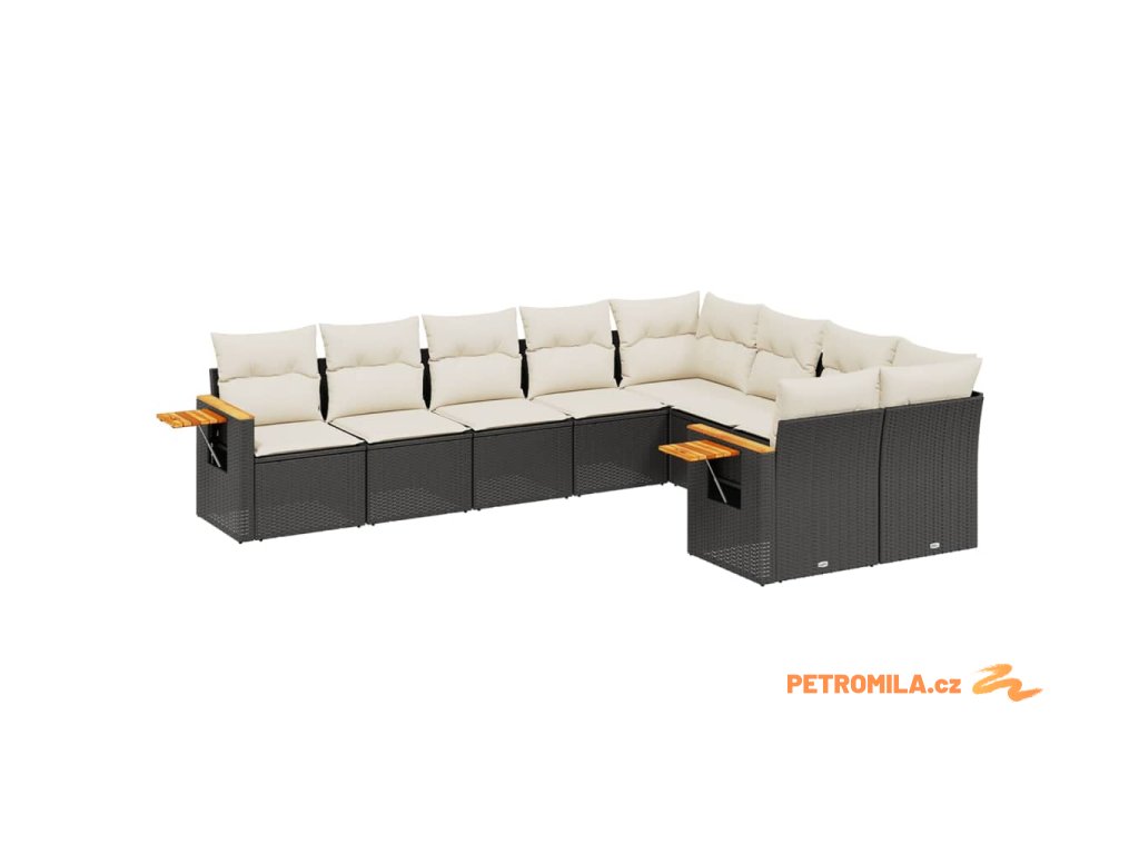 9dílná zahradní sedací souprava s poduškami černá polyratan