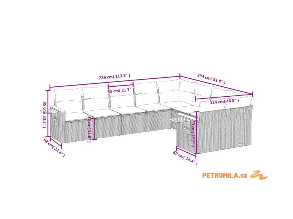 - 9x poduška na sedák s odnímatelným a pratelným potahem