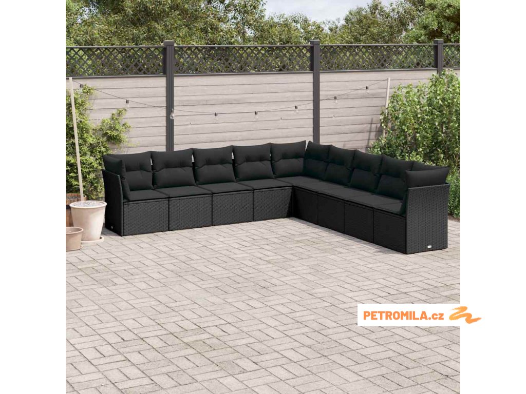 9dílná zahradní sedací souprava s poduškami černá polyratan