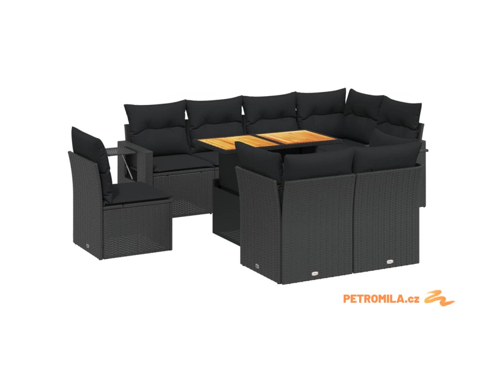 9dílná zahradní sedací souprava s poduškami černá polyratan