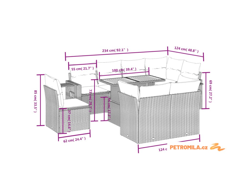 Tato zahradní sedací souprava je dokonalým doplňkem vaší zahrady, terasy nebo dvorku a poskytne vám pohodlné a příjemné místo, kde si můžete povídat s rodinou a přáteli nebo jen tak odpočívat a užívat si pobyt venku.