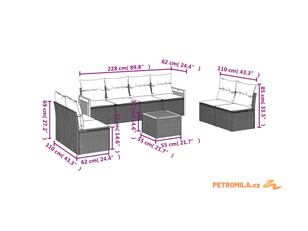 Sada zahradních pohovek s polštářem 8 pcs Béžová Poly ratan