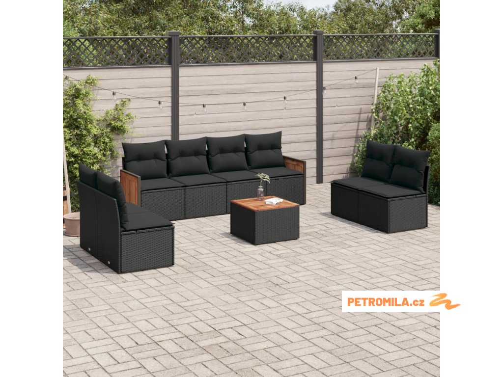 9dílná zahradní sedací souprava s poduškami černá polyratan