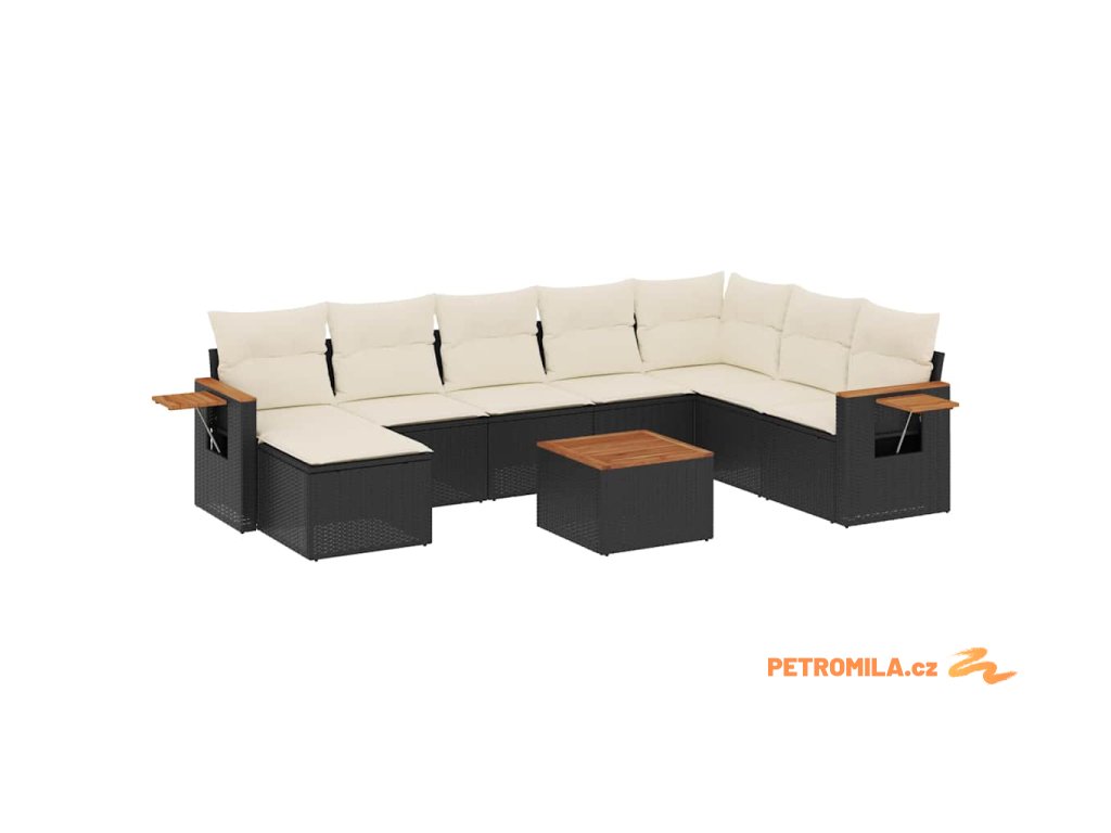 9dílná zahradní sedací souprava s poduškami černá polyratan