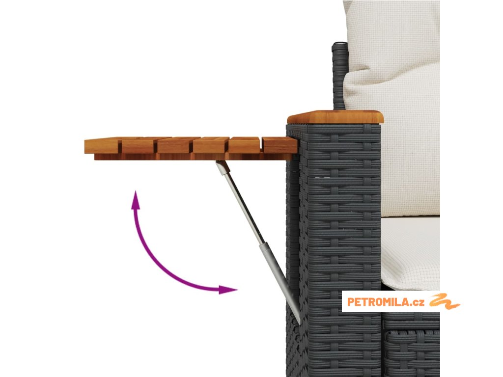- Pohodlný odkládací stolek: Tento venkovní nábytek má na područkách skládací stolek s plynovou pružinou, jež poskytuje praktické místo pro vaše nezbytnosti, kde je budete mít na dosah ruky.