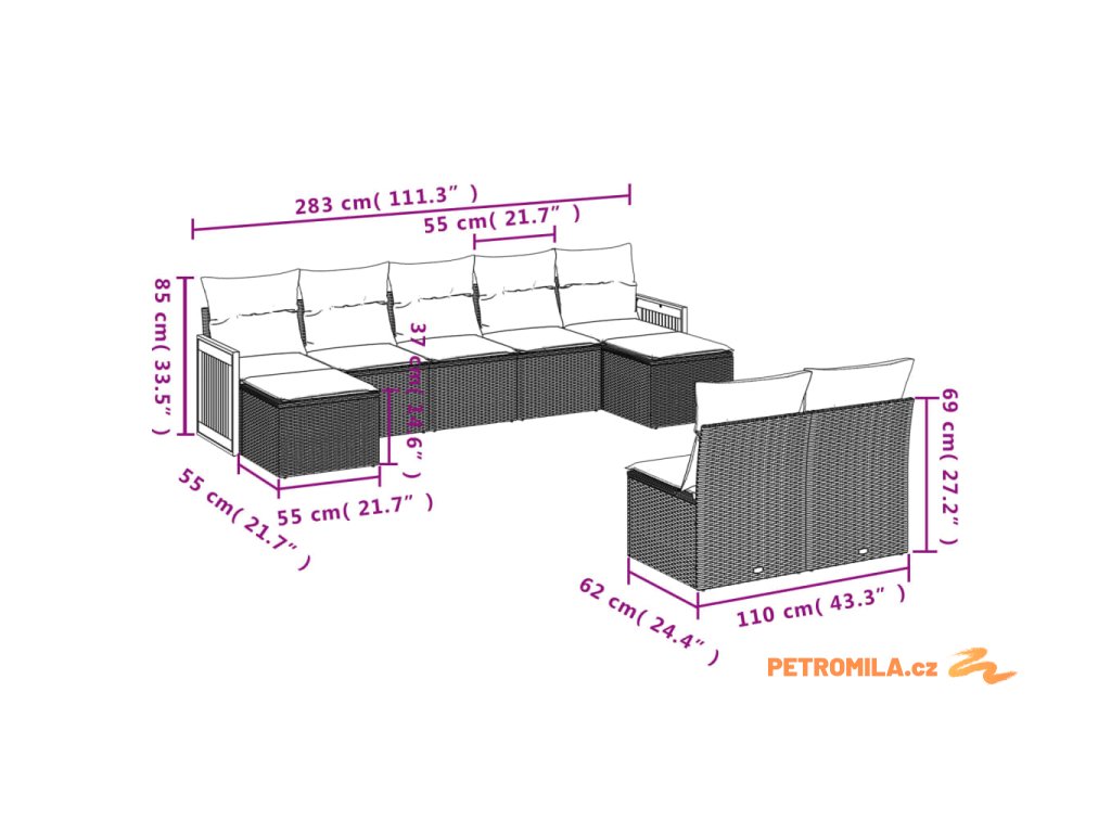 Sada zahradních pohovek s polštářem 8 pcs Béžová Poly ratan