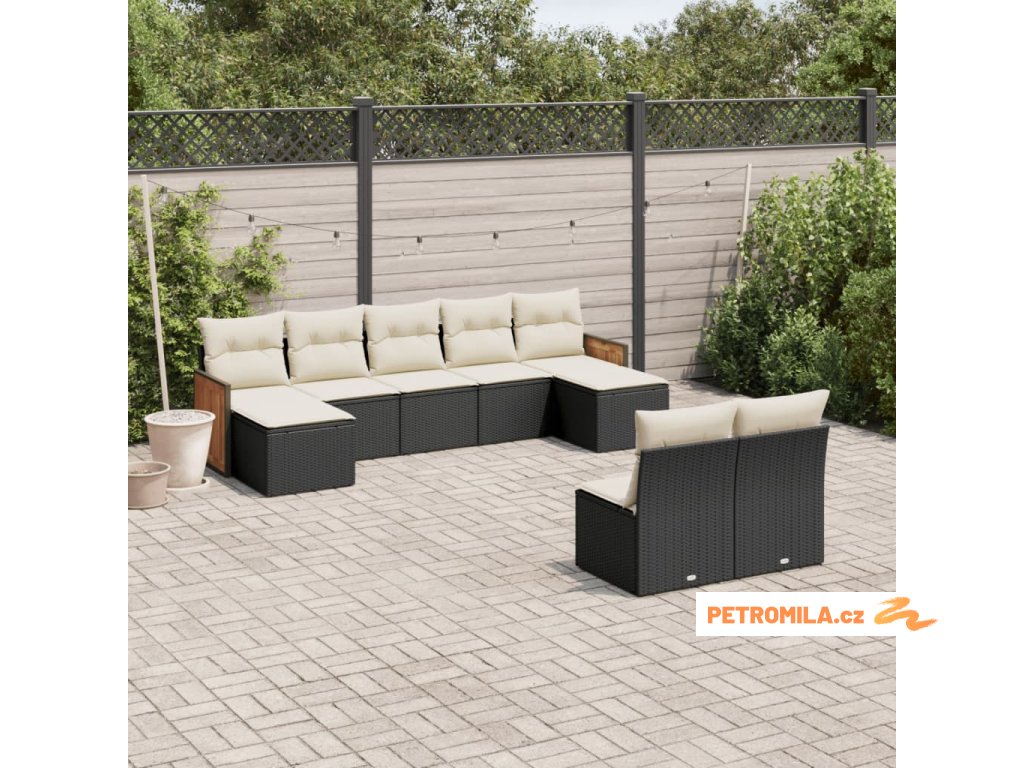 9dílná zahradní sedací souprava s poduškami černá polyratan