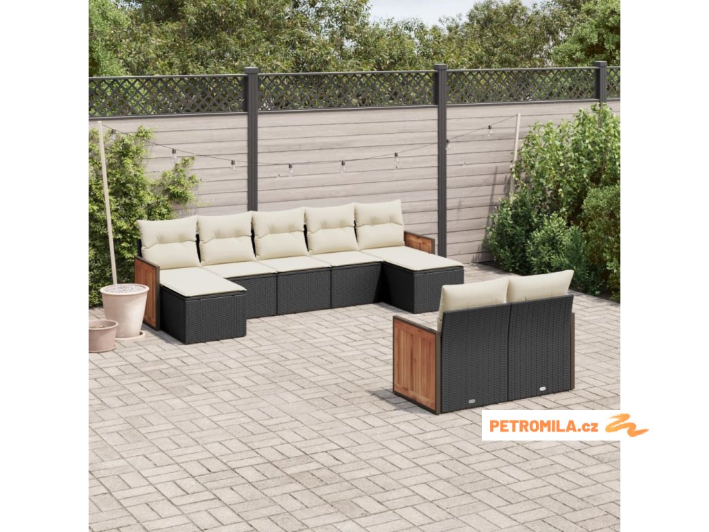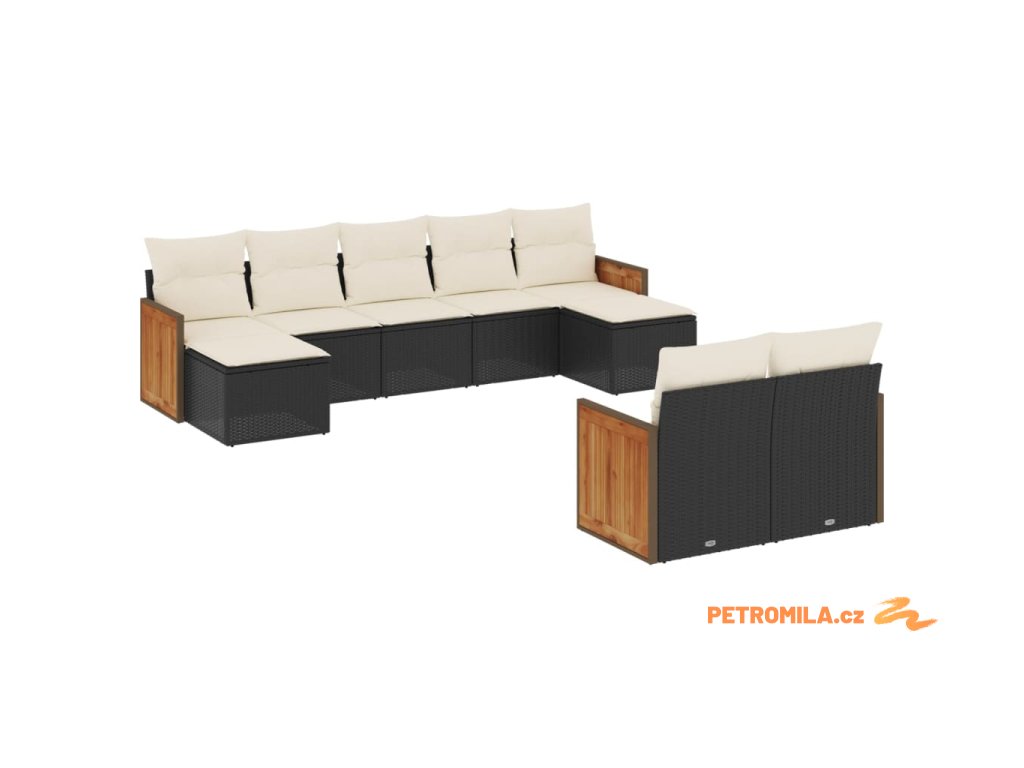 9dílná zahradní sedací souprava s poduškami černá polyratan