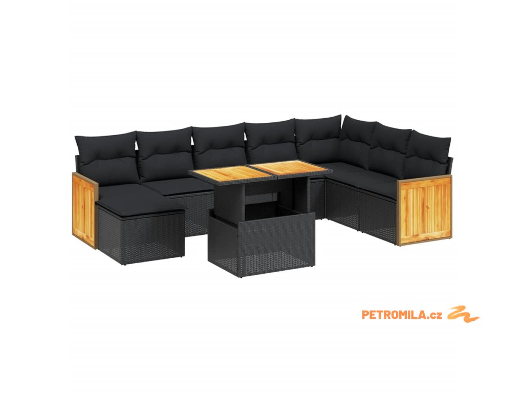 9dílná zahradní sedací souprava s poduškami černá polyratan