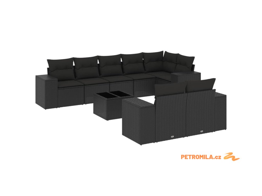 9dílná zahradní sedací souprava s poduškami černá polyratan