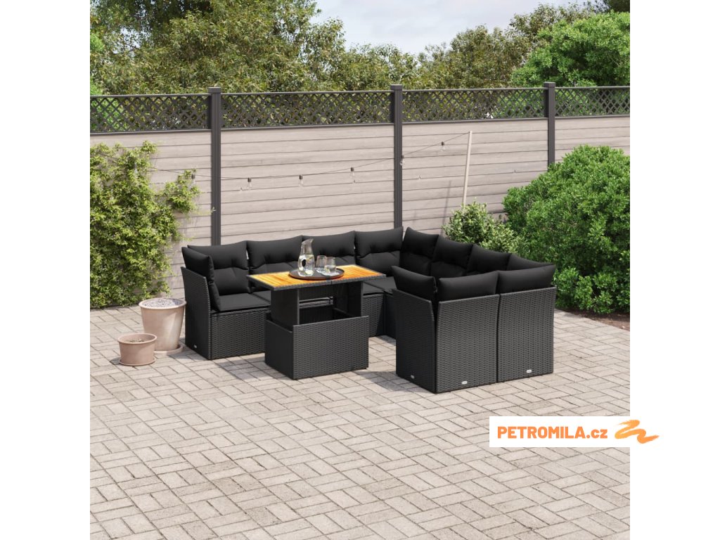 9dílná zahradní sedací souprava s poduškami černá polyratan